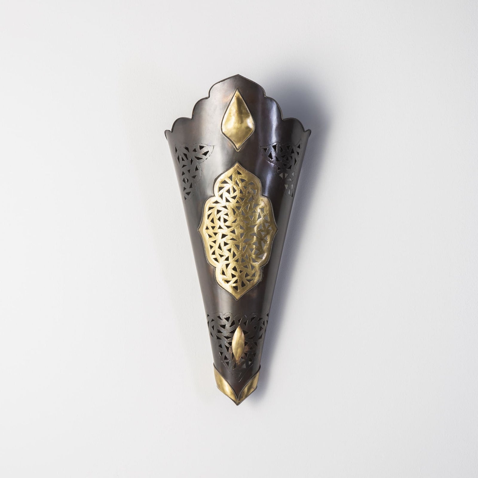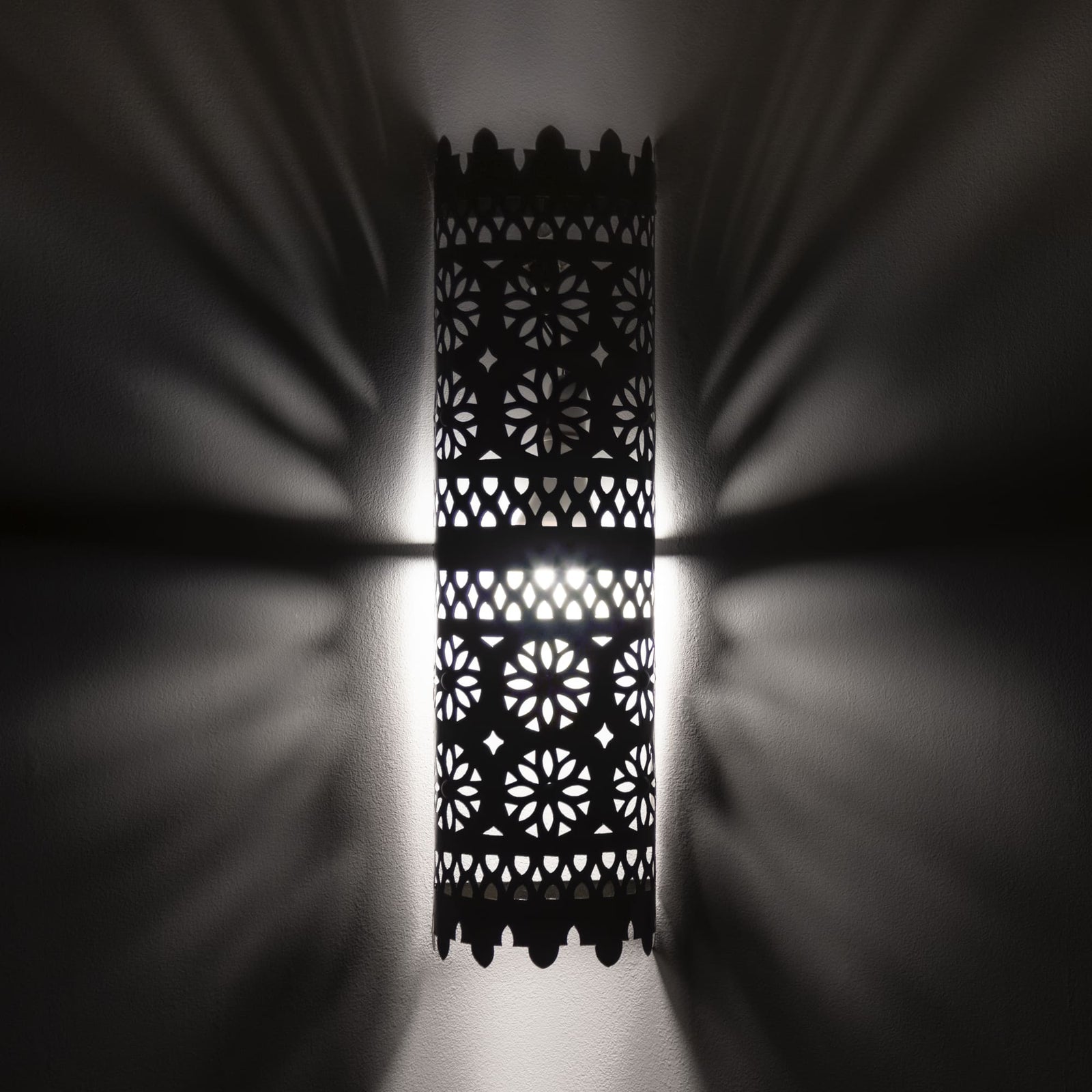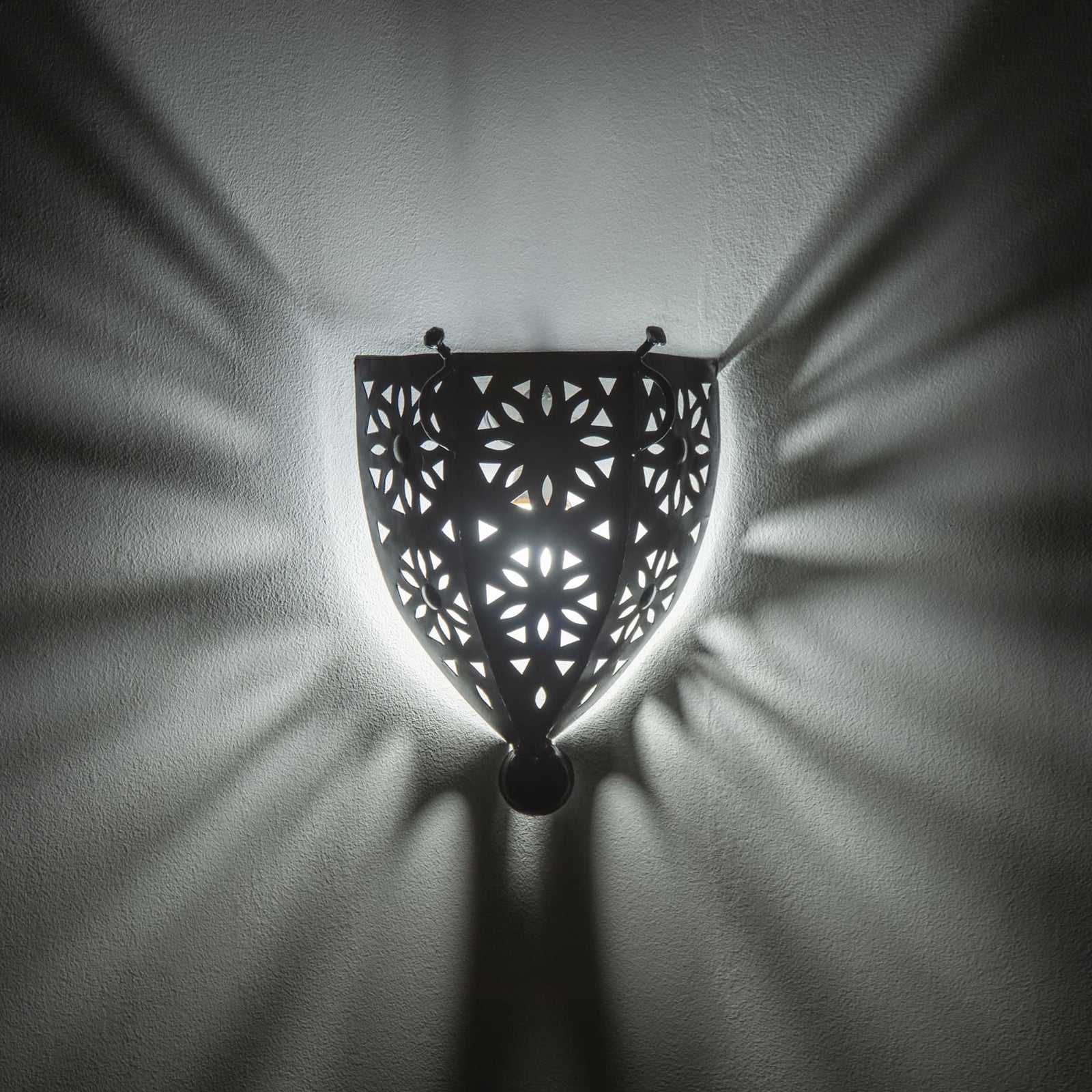 Il format de cette applique Figurant parmi les plus originales et saisissantes, elle évoque même un cône. Réalisée en fer forgé ajouré, sa conception à trois lunes, dans le plus pur style andalou, projette de magnifiques mosaïques de lumière dans votre intérieur.