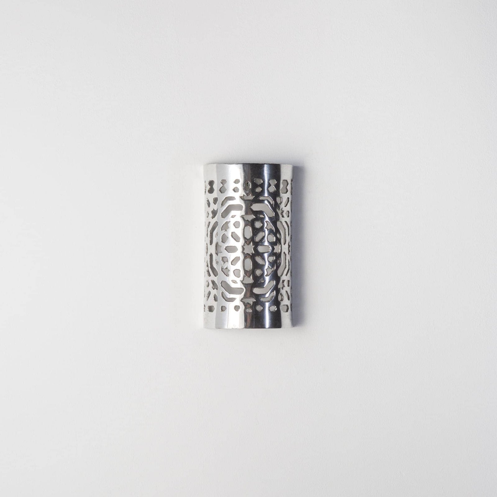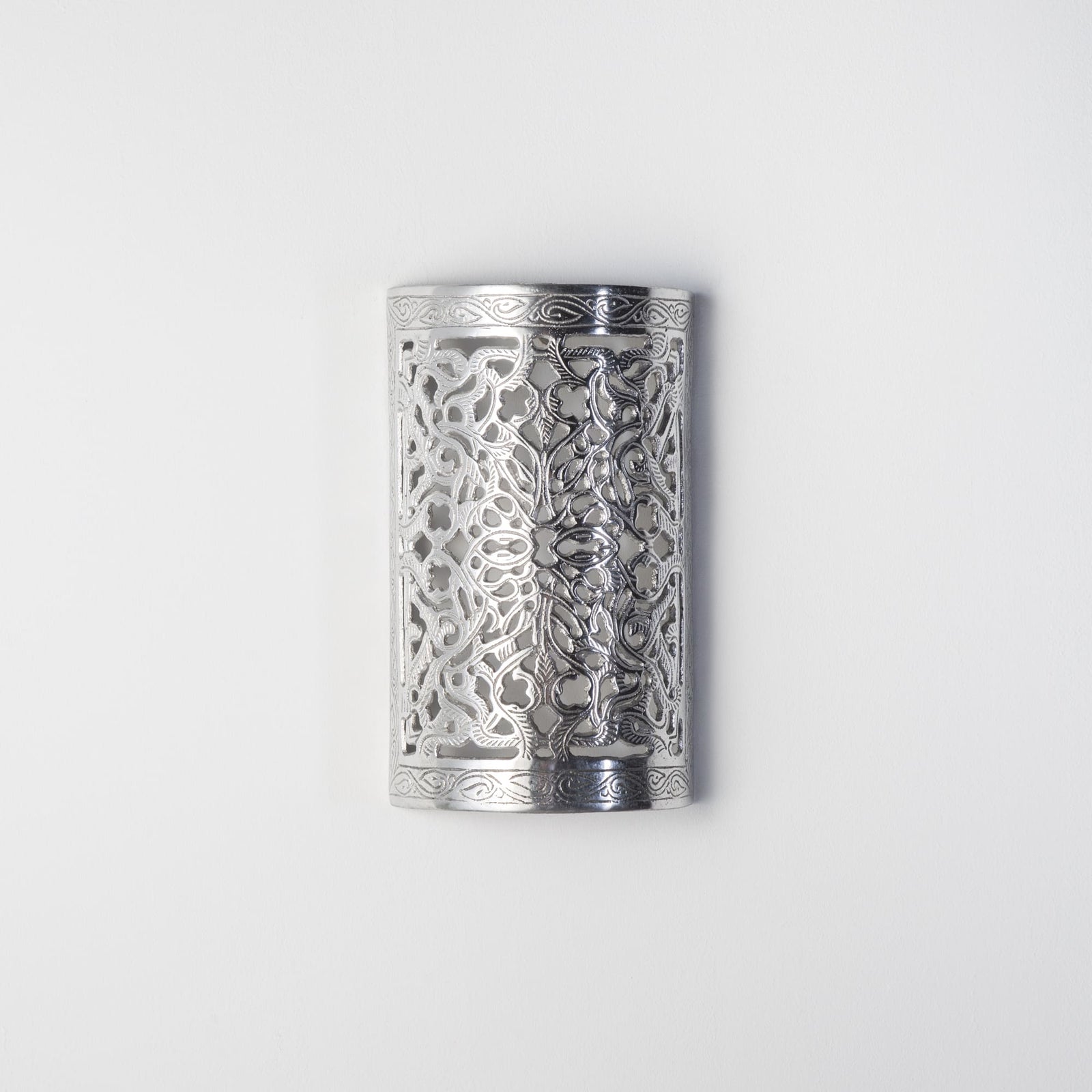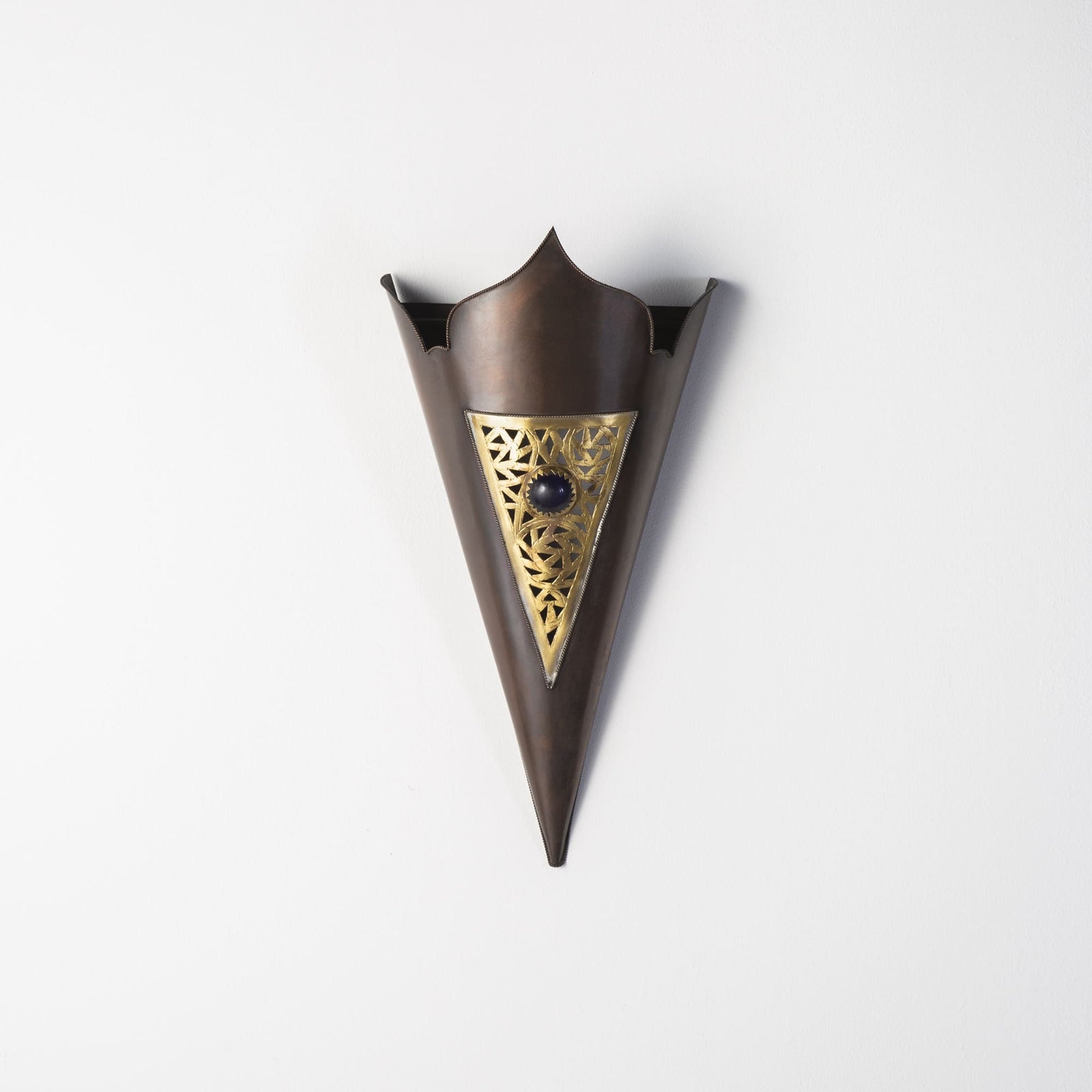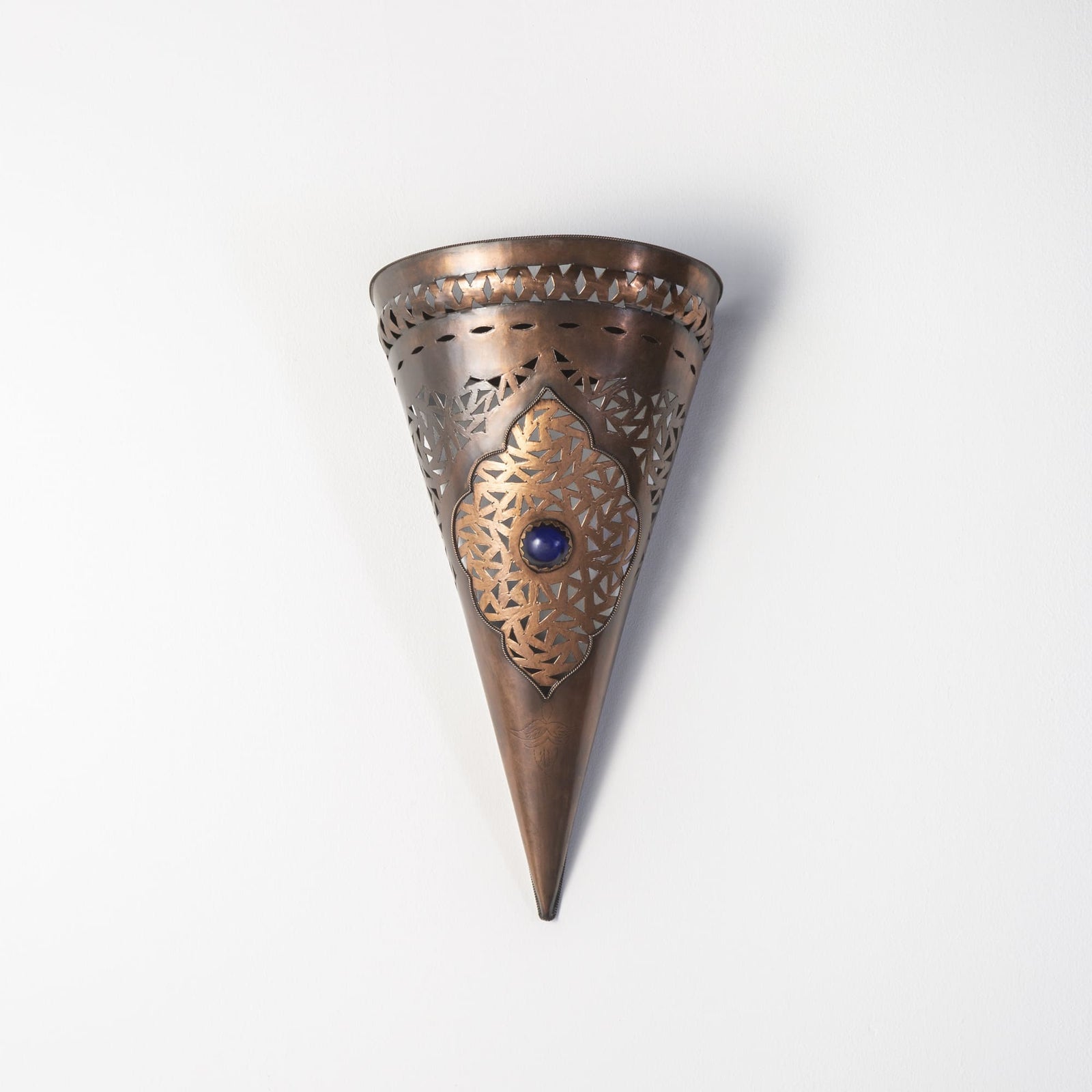 Il format de cette applique Figurant parmi les plus originales et saisissantes, elle évoque même un cône. Réalisée en fer forgé ajouré, sa conception à trois lunes, dans le plus pur style andalou, projette de magnifiques mosaïques de lumière dans votre intérieur.