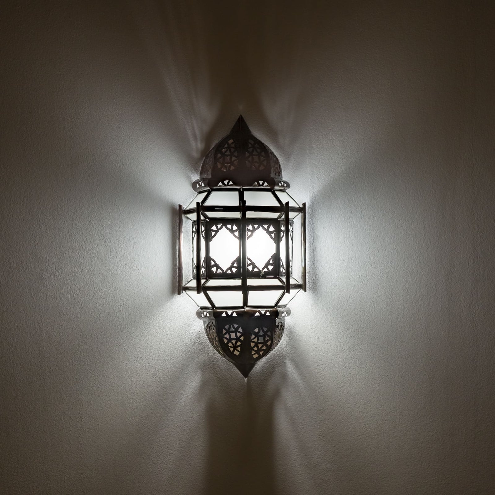 De ce point de vue, le design de cet élément est très original et a été spécialement conçu pour la décoration intérieure et extérieure de style arabe. Il est également idéal pour diffuser une lumière chaleureuse et accueillante. Son verre blanc presque opaque dissimule parfaitement l'ampoule, offrant ainsi un éclairage doux et uniforme.