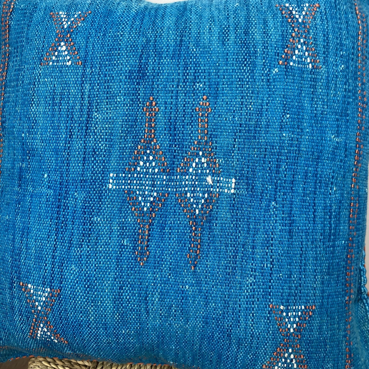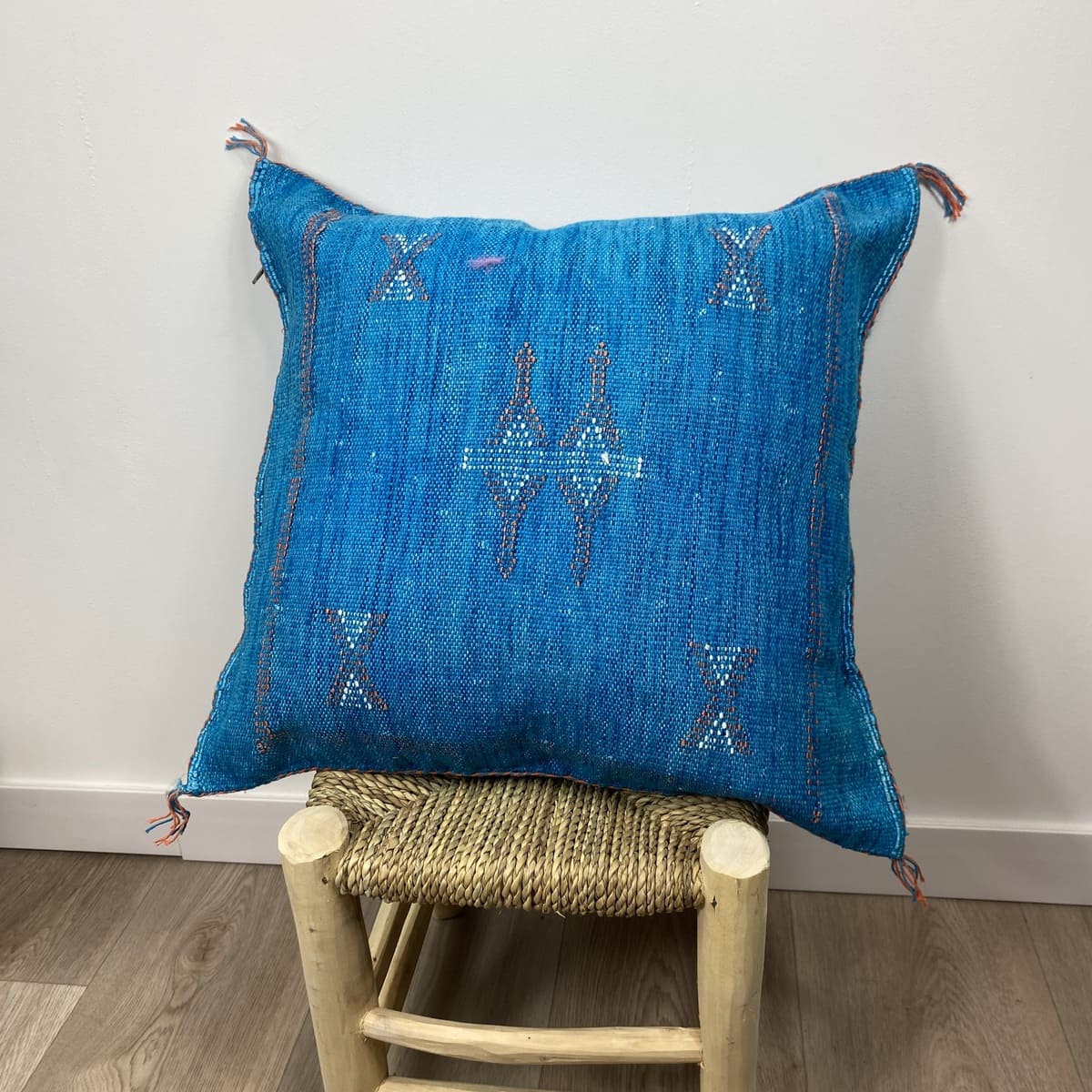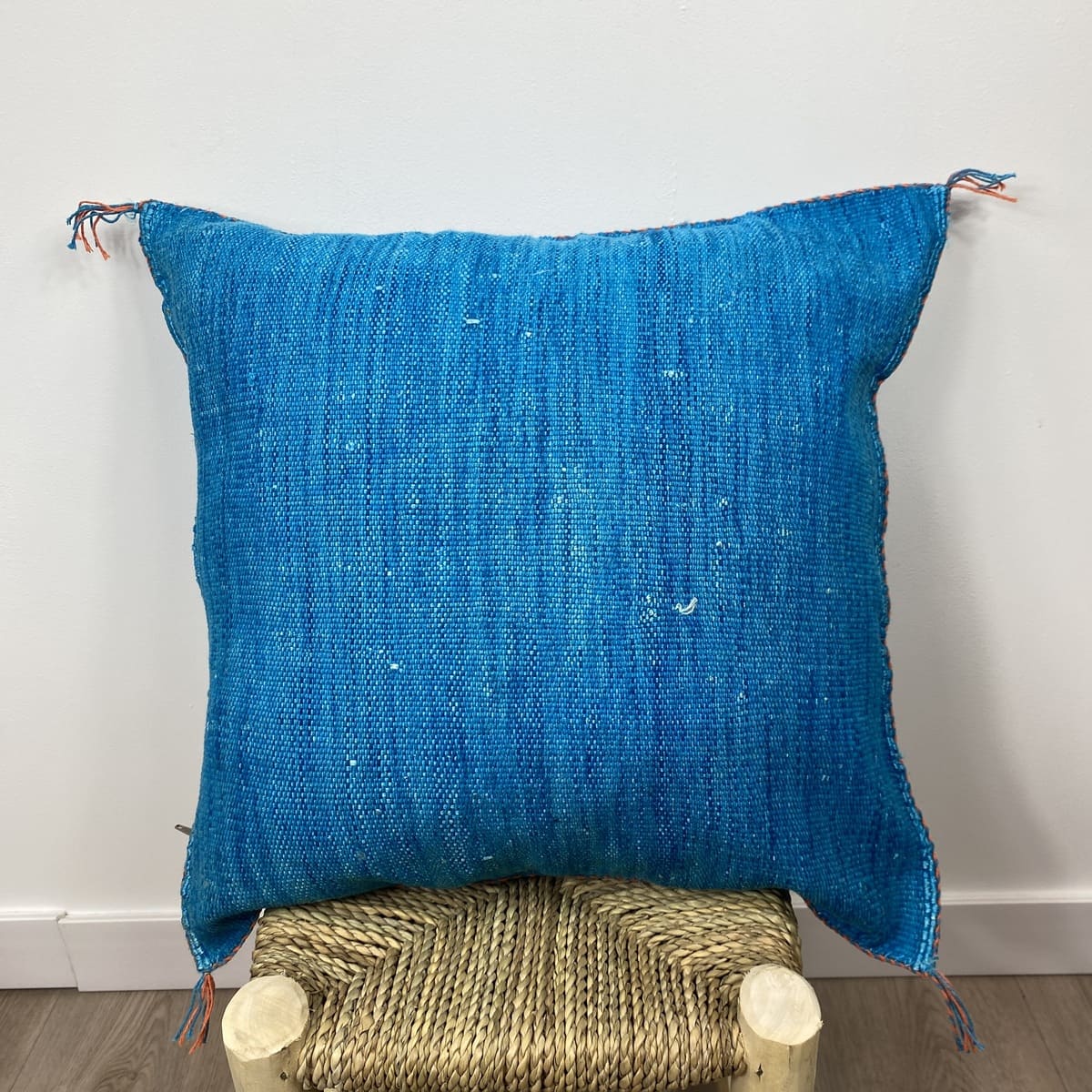 Nous présentons leCoussin en soie cactus bleu océan, Une pièce artisanale qui capture l'essence de la Méditerranée marocaine. Confectionné en fibre de cactus naturelle (sabra) et teint à la main avec des pigments minéraux, ce coussin de 50 x 50 cm offre un bleu intense aux nuances évoquant les profondeurs de l'Atlantique.