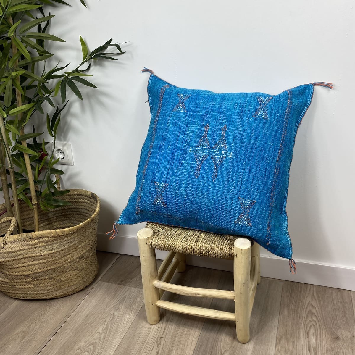 Ce coussin allie à la perfection le savoir-faire traditionnel aux couleurs vibrantes de la côte marocaine. Il apporte une touche de sophistication et un lien avec la nature, même aux espaces les plus raffinés.