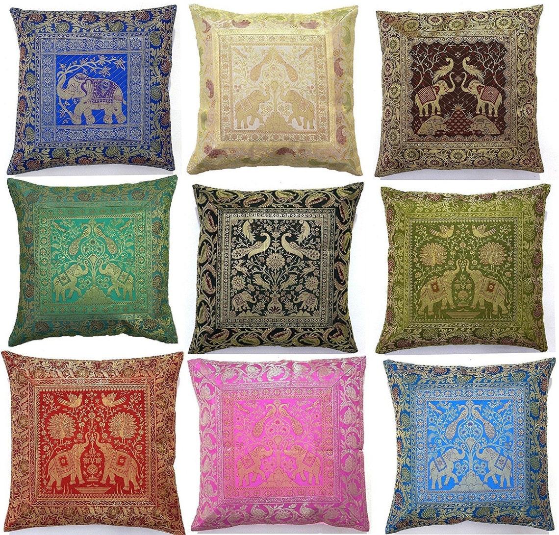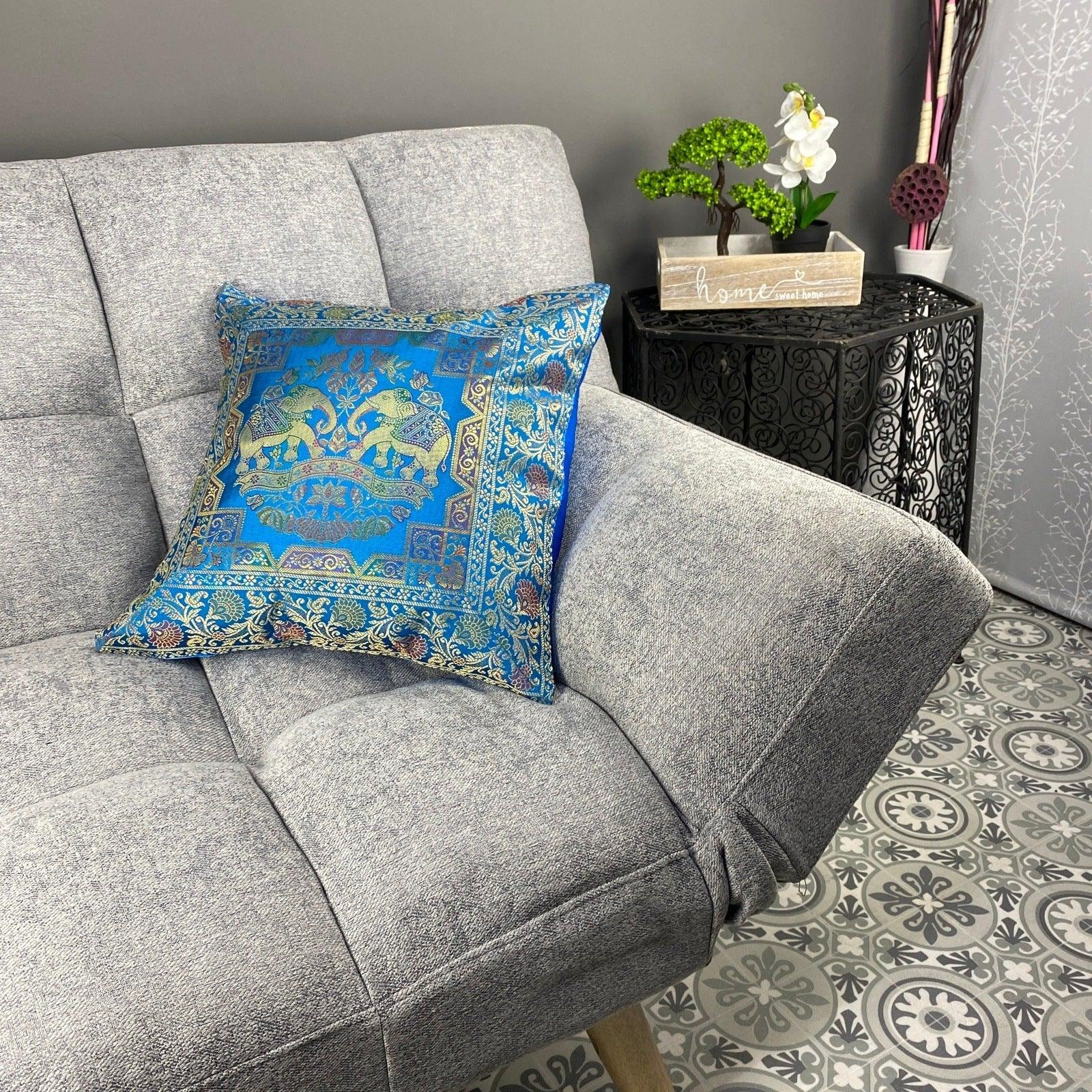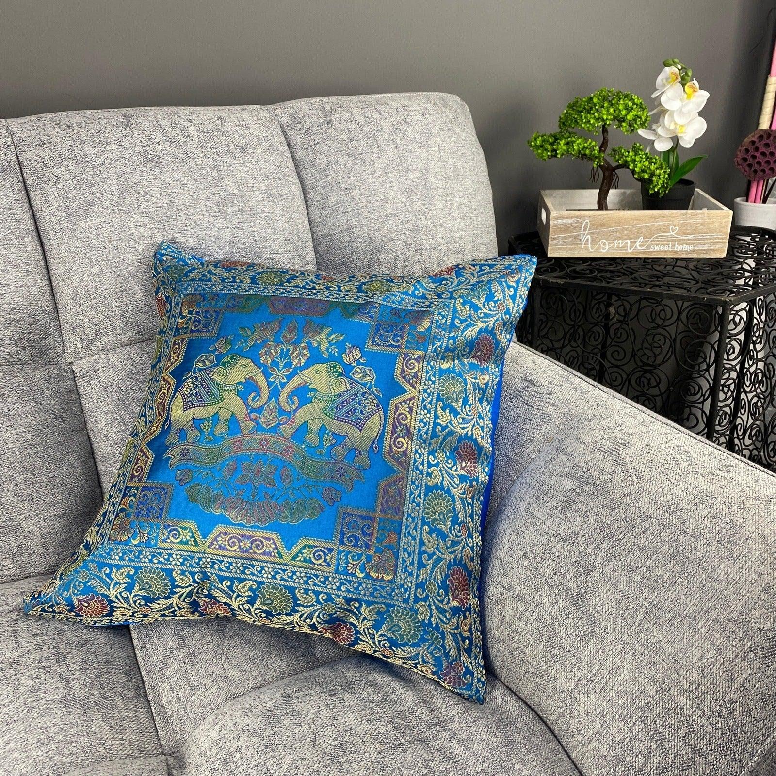 Housse de coussin indienne, motif éléphant porte-bonheur.