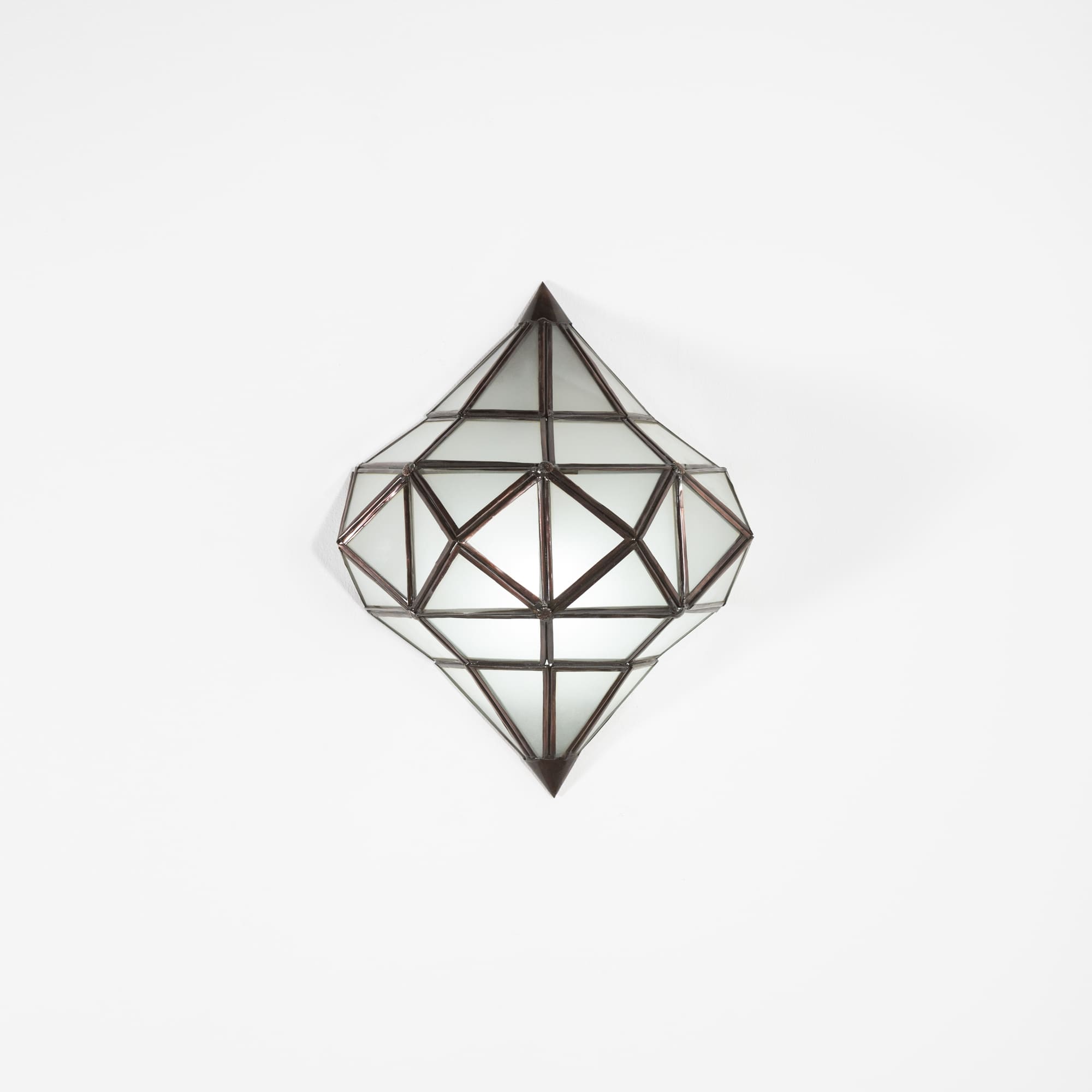 Fabriqué en fer forgé à la main et en verre blanc translucide.