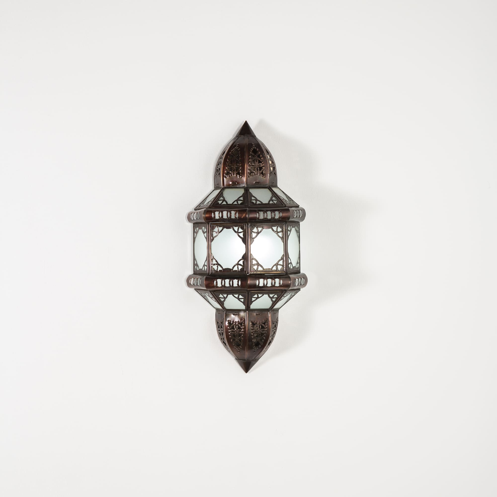 Applique murale de style arabe, modèle Didia, en fer forgé sculpté à la main et en verre blanc translucide.