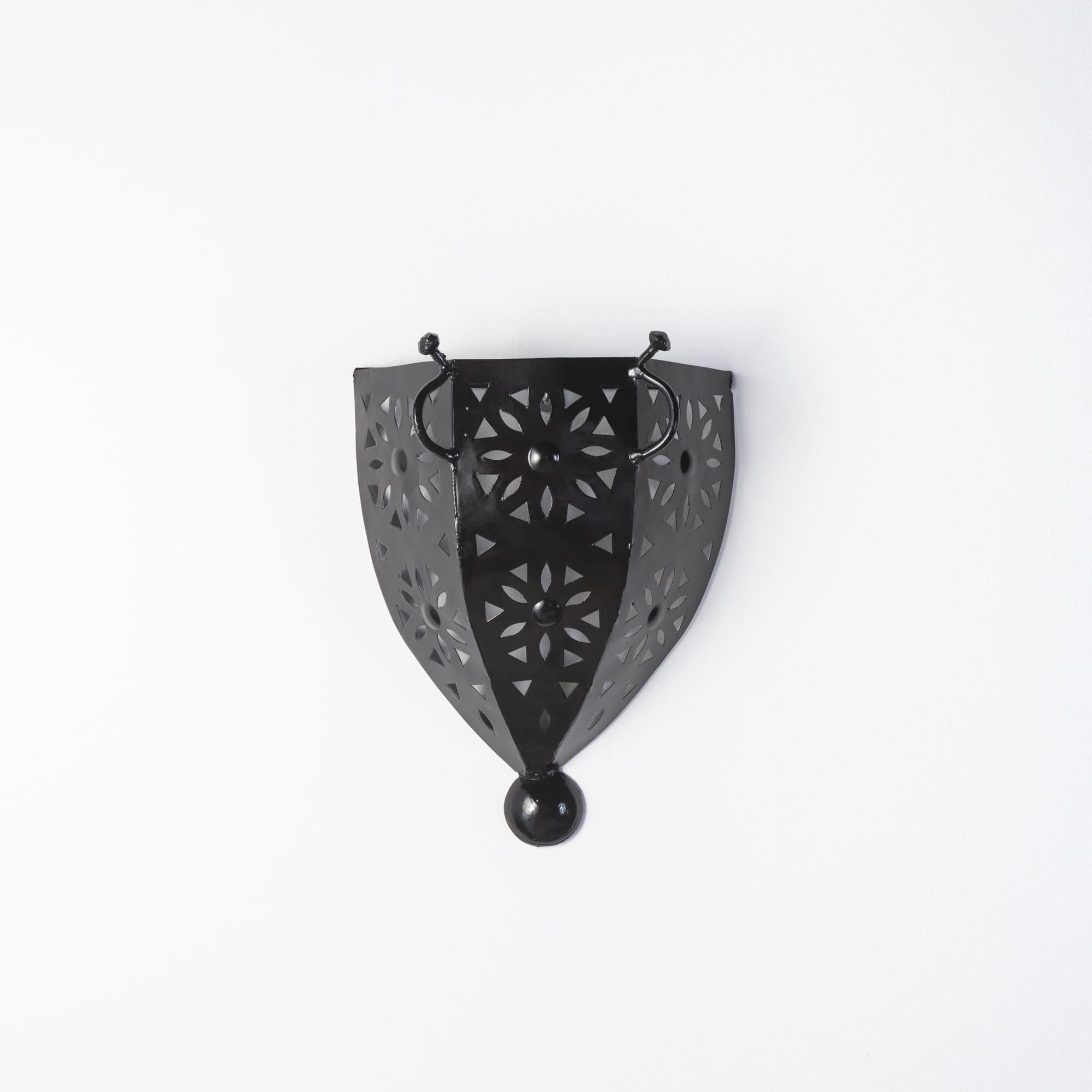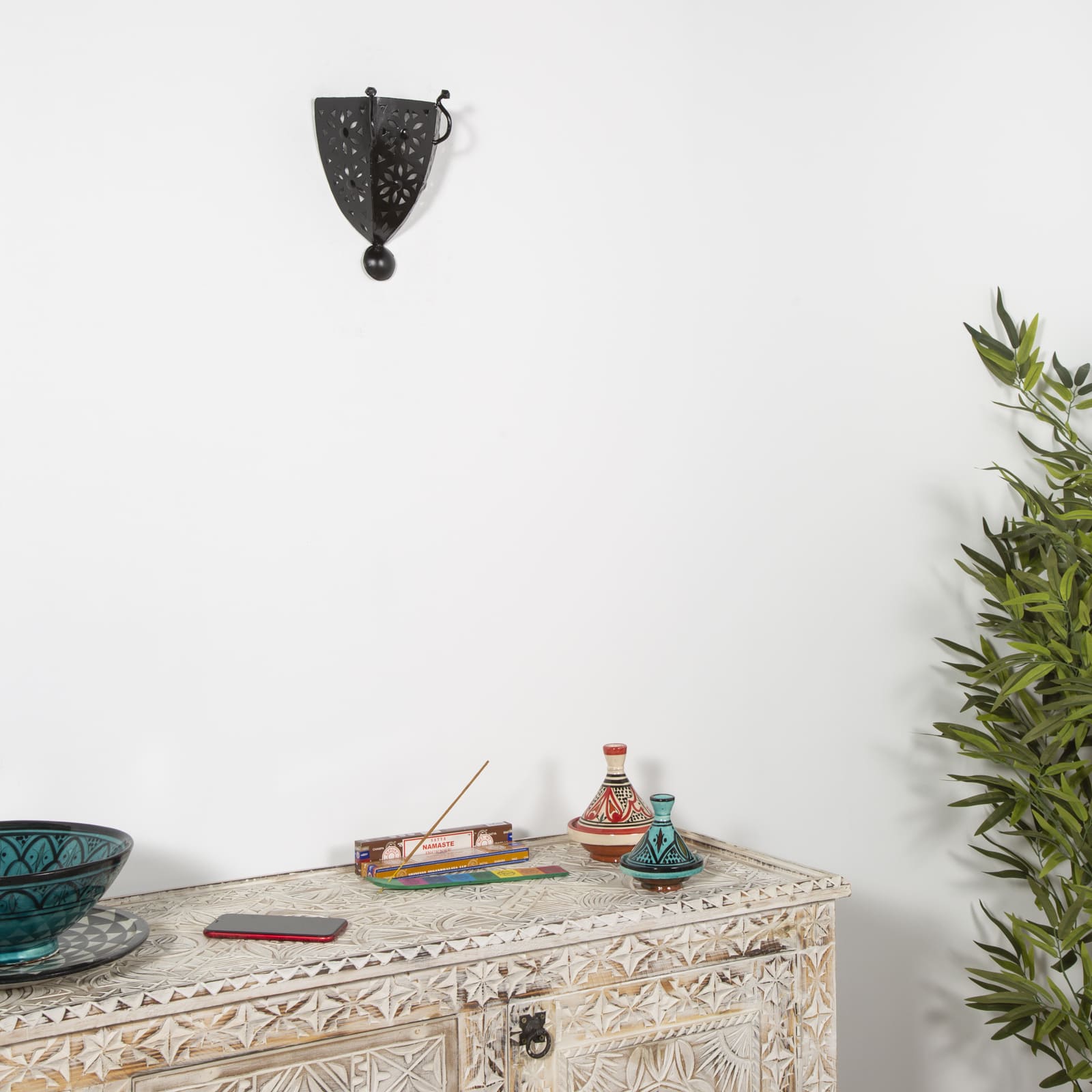 Applique murale marocaine en fer forgé peint à la main, modèle Said. Son style rustique la rend idéale pour décorer les espaces extérieurs et créer une ambiance lumineuse d'inspiration arabe, à la fois relaxante et chaleureuse. Cette applique marocaine est un modèle classique et traditionnel parmi les luminaires arabes.