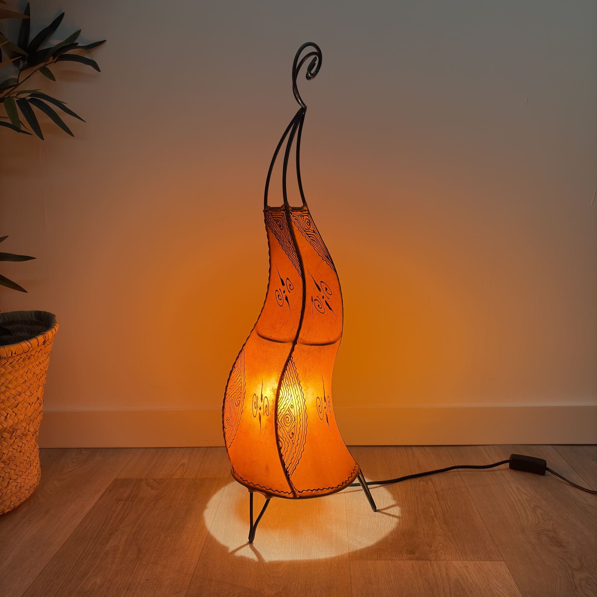 Lampe marocaine peinte à la main au henné, idéale pour créer une ambiance chaleureuse et relaxante grâce à son éclairage arabe traditionnel. Parfaite pour les chambres et les salons, elle s'harmonise avec différents styles de décoration.