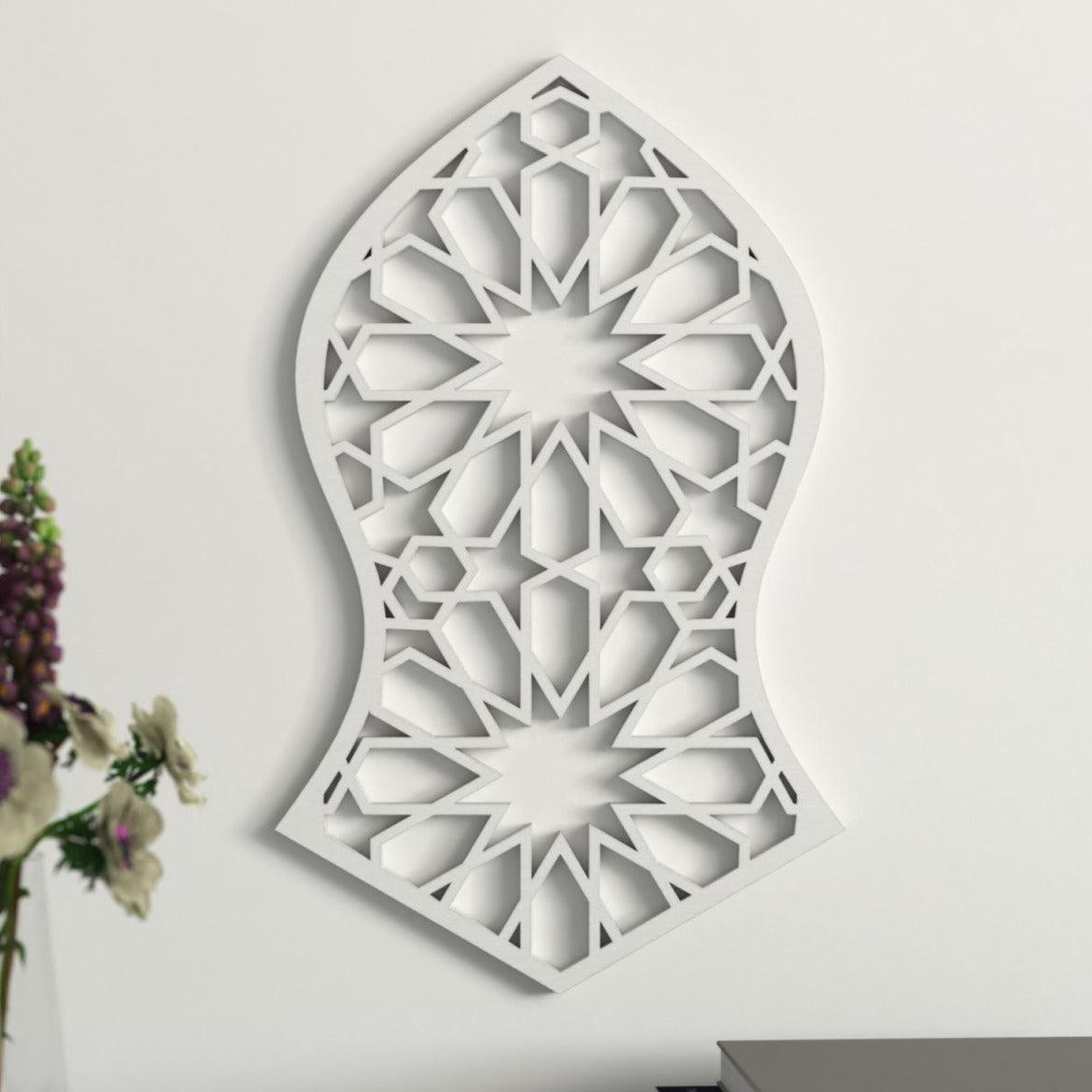 Décoration murale moderne de style arabe, réalisée en treillis de bois, pour un intérieur authentique. Son motif en forme d'étoile évoque les ornements de l'Alhambra et de la cour du Generalife. Elle apportera une touche mauresque et contemporaine aux murs et couloirs de votre maison, cuisine ou chambres.