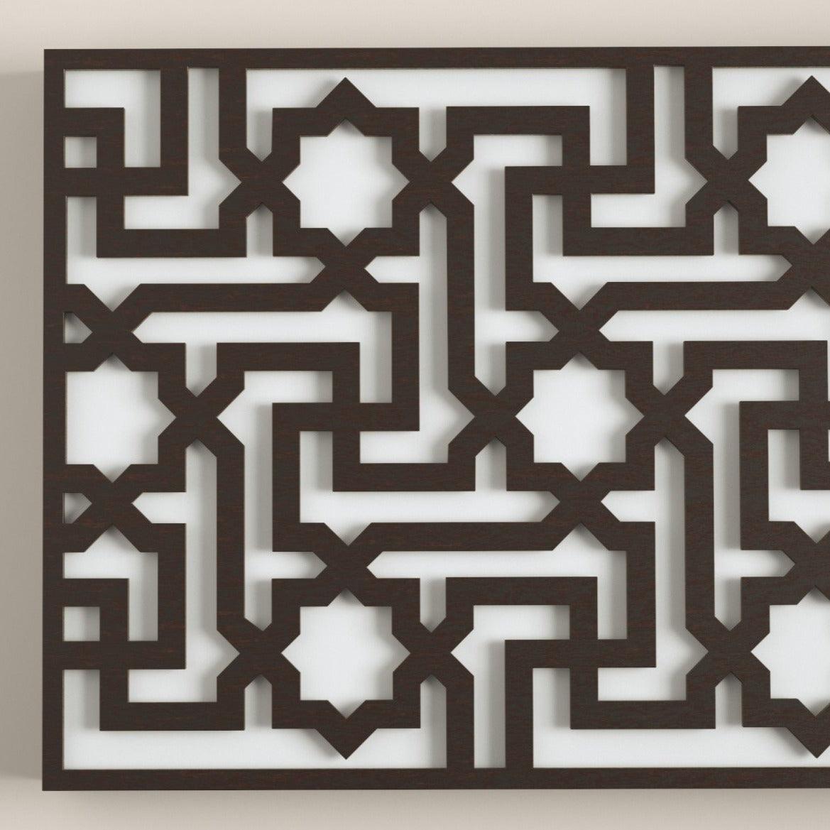 Tête de lit arabe, créée en treillis de bois découpé au laser, modèle mosquée.