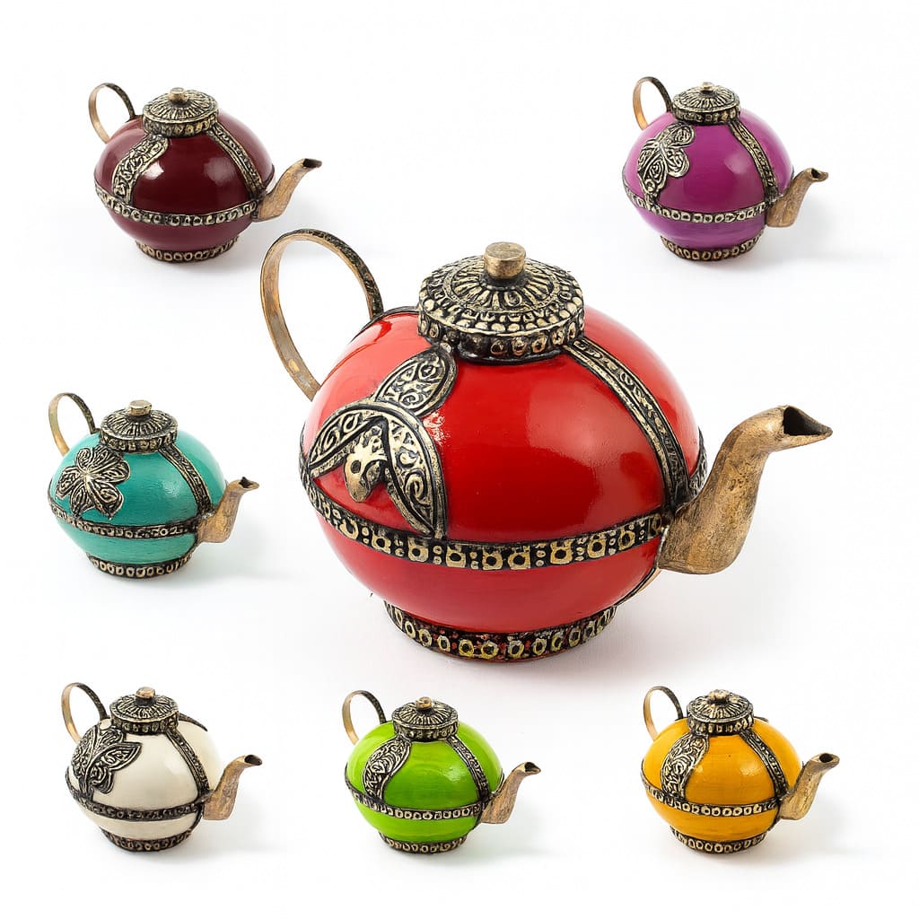 Théière marocaine décorative disponible en différents modèles et dans une palette de couleurs éclatantes.